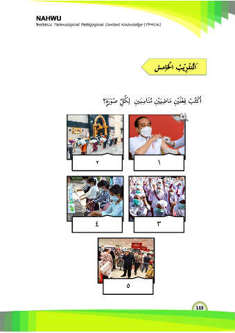 NAHWU Berbasis Technological Pedagogical Content Knowledge (TPACK) َ س َما َ ا َ تل َ د َ ر َ ي َ ب َ َ لا ِ ِ ِ ِ ِ ؟ ُ ُ ةروصُل ِ ُُ ُ ل ِك ُ يبسانم ُييضامُيَ ِ ُ لعف ُ بتكا ُ ْ َ َْ َ ْ ْ ْ َ َْ ٢ ۱ ٤ ۳ ٥ ُ 113