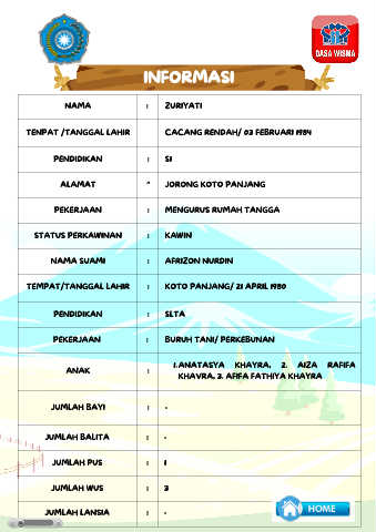 PEKERJAAN : MENGURUS RUMAH TANGGA
