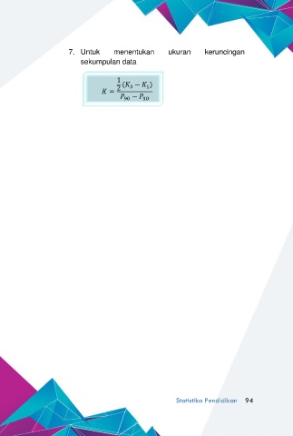 7. Untuk menentukan ukuran keruncingan sekumpulan data 1 ሺ − ሻ 2 3 1 = − 10 90 Statistika Pendidikan 94