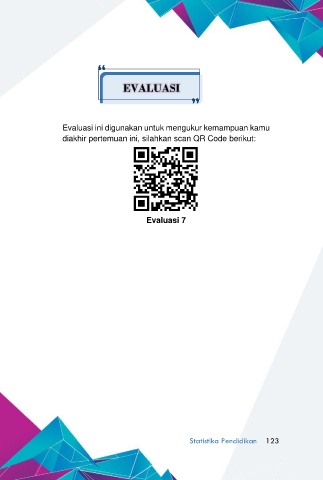 ,, EVALUASI ,, Evaluasi ini digunakan untuk mengukur kemampuan kamu diakhir pertemuan ini, silahkan scan QR Code berikut: Evaluasi 7 Statistika Pendidikan 123