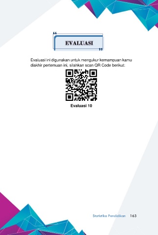,, EVALUASI ,, Evaluasi ini digunakan untuk mengukur kemampuan kamu diakhir pertemuan ini, silahkan scan QR Code berikut: Evaluasi 10 Statistika Pendidikan 163
