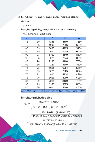 2) Menuliskan dan dalam bentuk hipotesis statistik