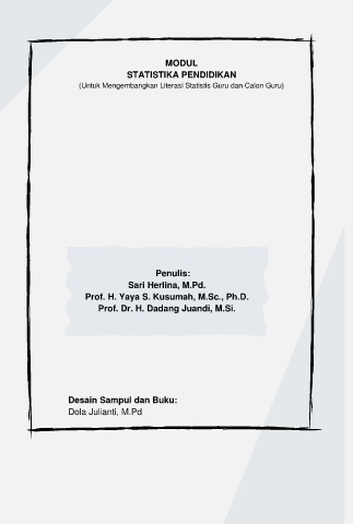MODUL STATISTIKA PENDIDIKAN (Untuk Mengembangkan Literasi Statistis Guru dan Calon Guru) Penulis: Sari Herlina, M.Pd. Prof. H. Yaya S. Kusumah, M.Sc., Ph.D. Prof. Dr. H. Dadang Juandi, M.Si. Desain Sampul dan Buku: Dola Julianti, M.Pd