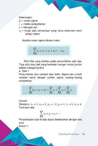 Tiiga sifat atau dalil yang berkaitan dengan notasi jumlah