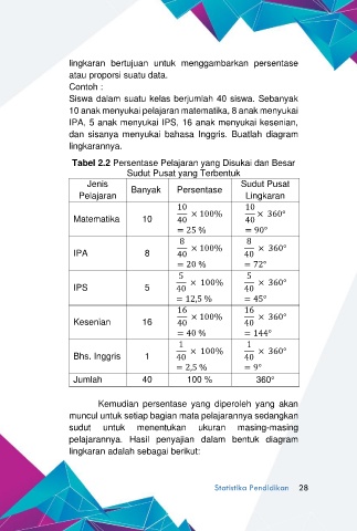 Tabel 2.2 Persentase Pelajaran yang Disukai dan Besar