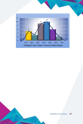 12 10 10 9 8 6 6 5 4 3 2 2 0 Histogram dan Poligon Frekuensi Berat Badan Statistika Pendidikan 39