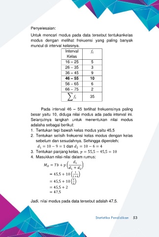 Jadi, nilai modus pada data tersebut adalah 47,5.