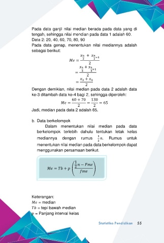 tengah, sehingga nilai mendian pada data 1 adalah 60.