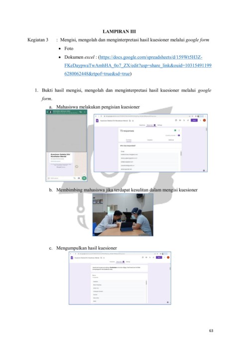 Kegiatan 3 : Mengisi, mengolah dan menginterpretasi hasil kuesioner melalui google form