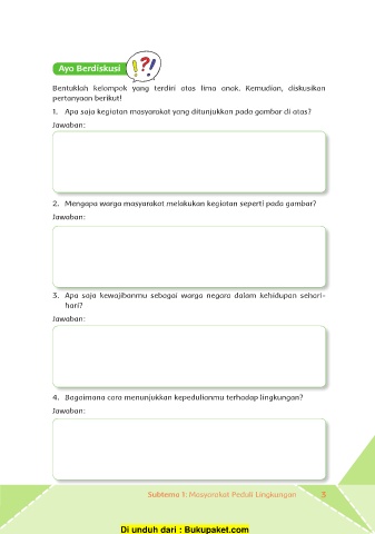 Bentuklah kelompok yang terdiri atas lima anak. Kemudian, diskusikan