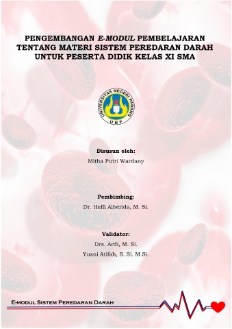 PENGEMBANGAN E-MODUL PEMBELAJARAN TENTANG MATERI SISTEM PEREDARAN DARAH UNTUK PESERTA DIDIK KELAS XI SMA Disusun oleh: Mitha Putri Wardany Pembimbing: Dr. Heffi Alberida, M. Si. Validator: Drs. Ardi, M. Si. Yusni Atifah, S. Si. M.Si.