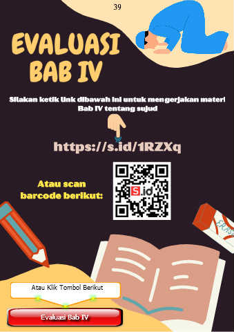 39 EVALUASI BAB IV Silakan ketik link dibawah ini untuk mengerjakan materi Bab IV tentang sujud https://s.id/1RZXq Atau scan barcode berikut: