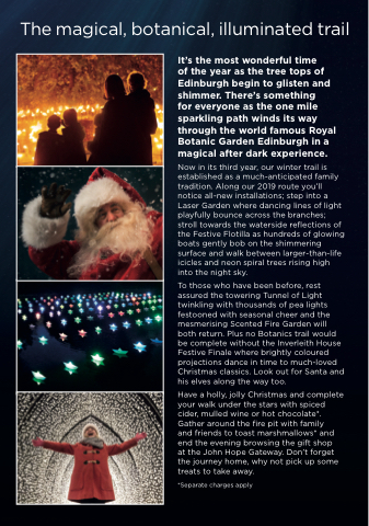 for everyone as the one mile sparkling path winds its way through the world famous Royal Botanic Garden Edinburgh in a magical after dark experience.