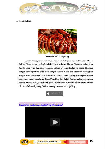 dengan suhu 180 derajat celsius selama 45 menit. Bebek Peking dihidangkan dengan
