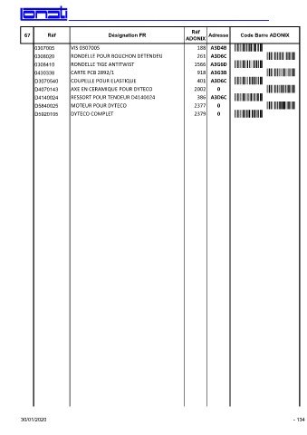 67 Réf Désignation FR Adresse Code Barre ADONIX