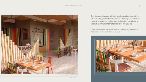 Filipino casual dining restaurant. Emphasizing on natural