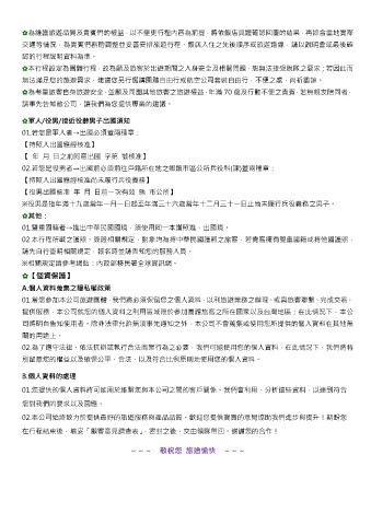 01.您提供的個人資料將可能用於維繫您與本公司之間的客戶關係。我們會利用、分析這些資料,以達到符合