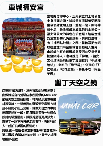 第⼆階段-⾃駕MiMicar到⼭上天空之境秘