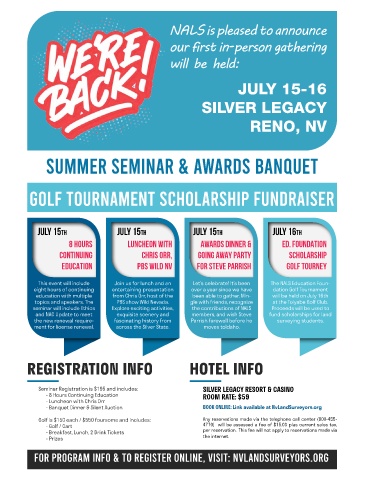 - Banquet Dinner & Silent Auction BOOK ONLINE: Link available at NvLandSurveyors.org