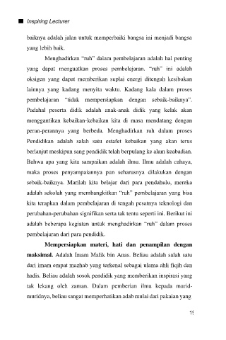 hadis. Beliau adalah sosok pendidik yang memberikan inspirasi yang