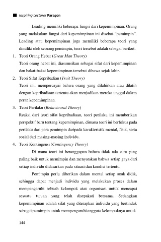Leading atau kepemimpinan juga memiliki beberapa teori yang