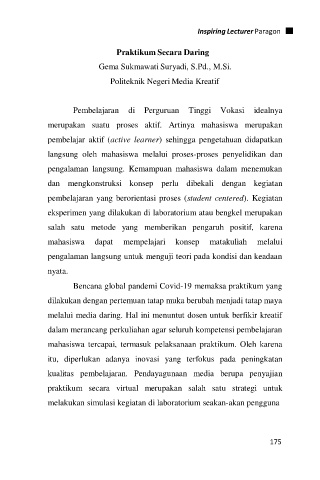 melalui media daring. Hal ini menuntut dosen untuk berfikir kreatif