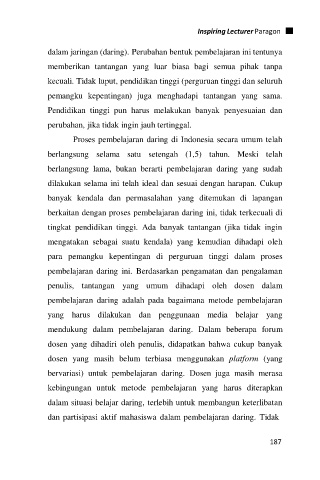 dalam jaringan (daring). Perubahan bentuk pembelajaran ini tentunya