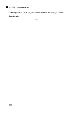 Inspiring Lecturer Paragon psikologis) tidak dapat berjalan sendiri-sendiri, perlu upaya kolektif dan sinergis. *** 200