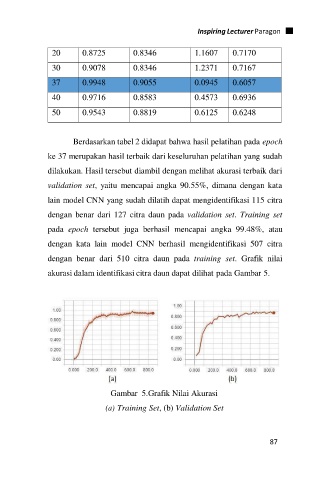 dengan benar dari 127 citra daun pada validation set. Training set