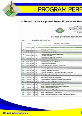➢ Present the duly approved Project Procurement Management Plan of the Program being surveyed. AREA X: Administration