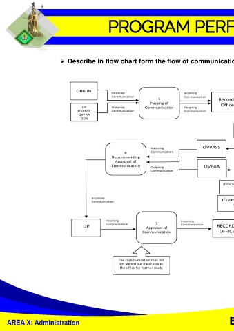 ➢ Describe in flow chart form the flow of communications from within and from outside. AREA X: Administration