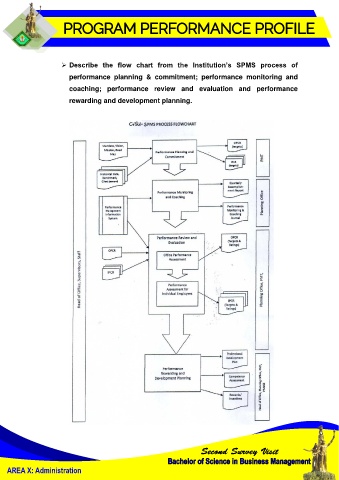 ➢ Describe the flow chart from the Institution’s SPMS process of performance planning & commitment; performance monitoring and coaching; performance review and evaluation and performance rewarding and development planning. AREA X: Administration