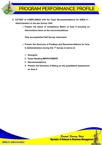5. EXTENT of COMPLIANCE with the Team Recommendations for AREA X –