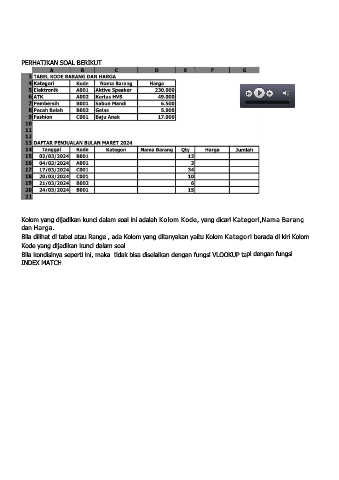 Kolom yang dijadikan kunci dalam soal ini adalah Kolom Kode, yang dicari Kategori,Nama Barang
