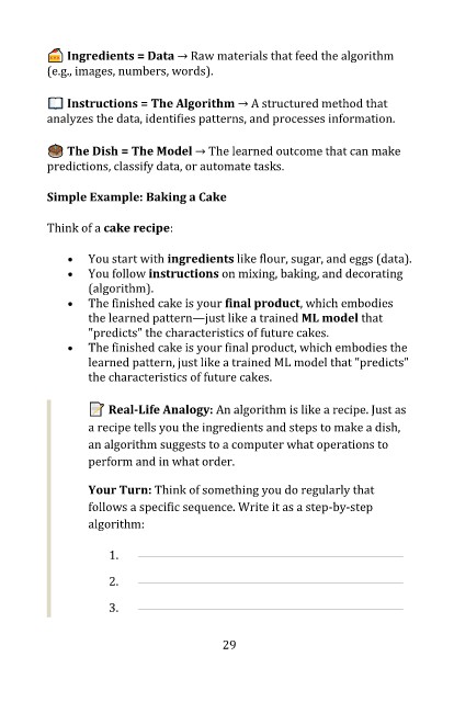 •  You start with ingredients like flour, sugar, and eggs (data).