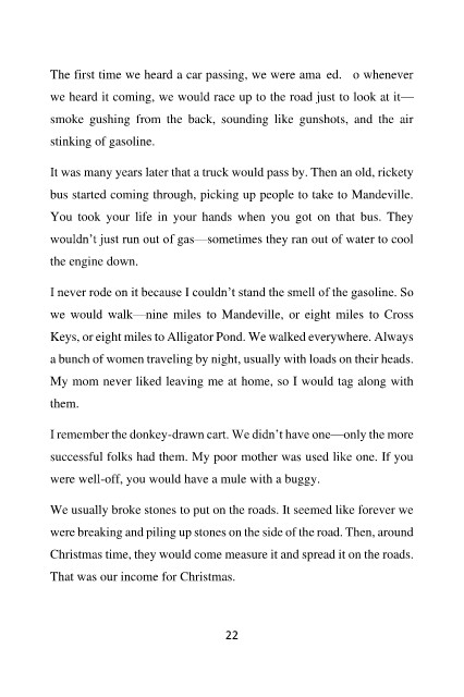we  would  walk—nine  miles  to  Mandeville,  or eight  miles  to  Cross