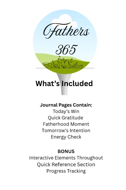 Fathers 365 What’s Included Journal Pages Contain: Today’s Win Quick Gratitude Fatherhood Moment Tomorrow’s Intention Energy Check BONUS Interactive Elements Throughout Quick Reference Section Progress Tracking