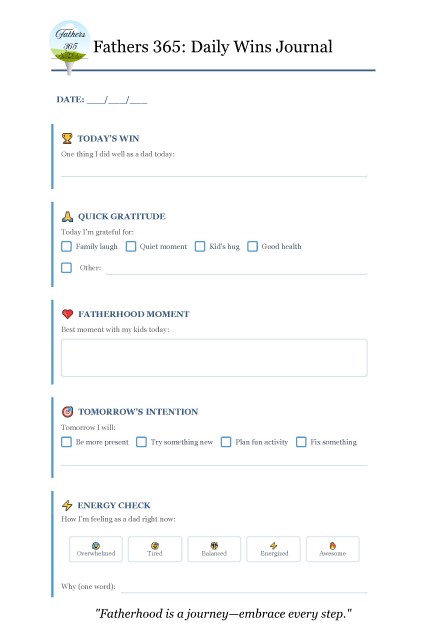 Fathers Fathers 365: Daily Wins Journal F a t h e r s 3 6 5 : D a i l y W i n s J o u r n a l 365 "Fatherhood is a journey—embrace every step."
