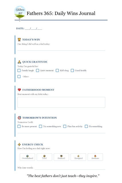 Fathers Fathers 365: Daily Wins Journal F a t h e r s 3 6 5 : D a i l y W i n s J o u r n a l 365 "The best fathers don’t just teach—they inspire."