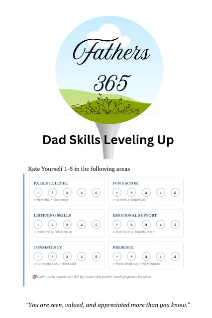 Fathers 365 Dad Skills Leveling Up Rate Yourself 1-5 in the following areas (be sure to say why) □ Patient ____ □ Fun ____ □ Good listener ___ □ Problem Solver ___ "You are seen, valued, and appreciated more than you know."