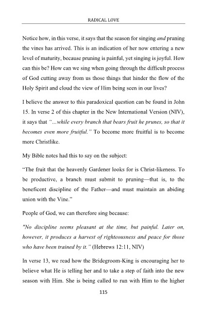 level of maturity, because pruning is painful, yet singing is joyful. How