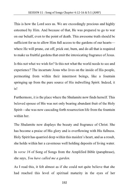 SESSION 11 : Song of Songs Chapter 4:12-16 & 5:1 (AMP)