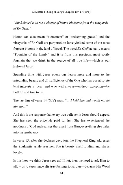 SESSION 4 : Song of Songs Chapter 1:9-17 (TPT)