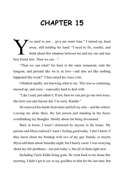 Myra told them about Saturday night, but I barely cared. I was worrying