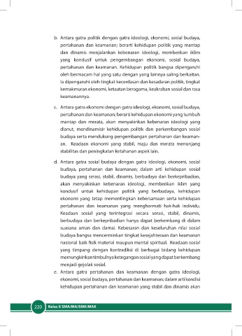 b. Antara gatra politik dengan gatra ideologi, ekonomi, sosial budaya,