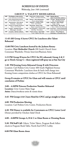 3:45 PMGroupsA&CleaveHotelforCPCCandgostraighttoGlam 4:00 PM Production Meeting