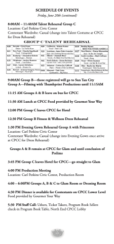 4:00 – 6:00PM Groups A, B & C to Glam Room or Dressing Room 4:30 PM Dinner is available for Contestants on CPCC Lower Level
