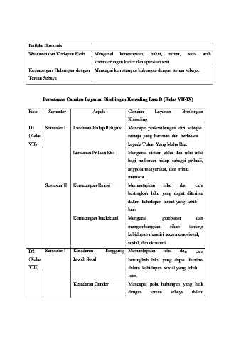 Fase Semester Aspek Capaian Layanan Bimbingan