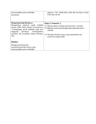 apresiasi  dan  kreatifitas  dalam  berkarya   9.3 Mempresetasikan karya yang dipamerkan dan