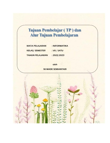 MATA PELAJARAN : INFORMATIKA KELAS/ SEMESTER : VII / SATU TAHUN PELAJARAN : 2022/2023 oleh NI MADE SEMIANTARI